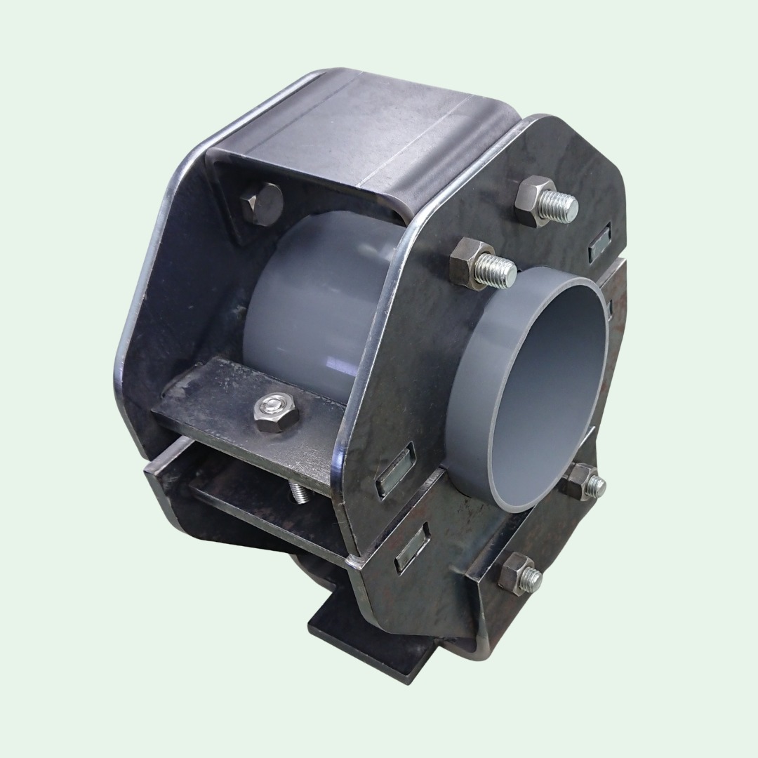2023.6.14 Pipe shoe/Pipe saddle Yamashita has developed weldless pipe shoes and saddles. These products are composed of plates and bolts, eliminating the need for on-site welding.
