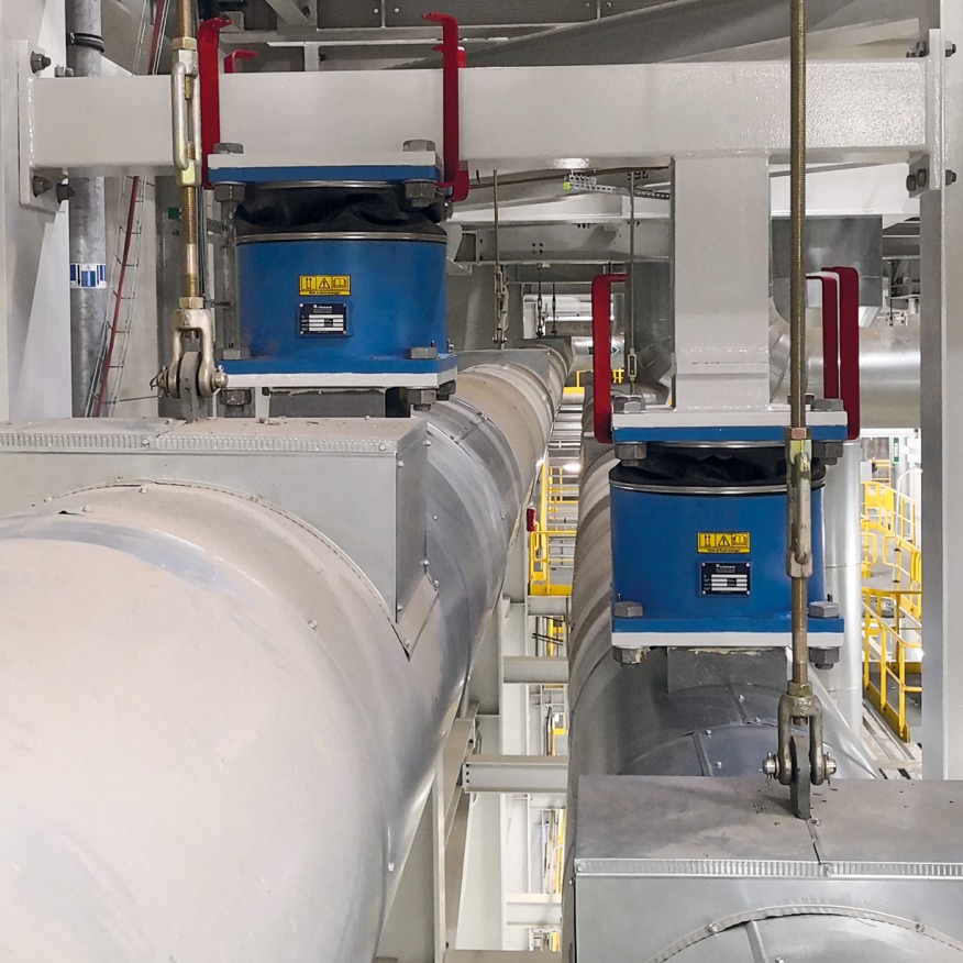 Viscoelastic dampers are used to reduce resonant vibrations.