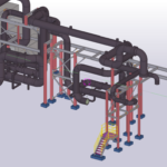 プラントや工場設備内の配管やダクト、ケーブルなどをまとめて支持する架構物です。